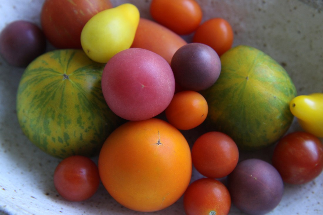 They are so beautiful and the names entrancing – Green Zebra, Tigerella, Ida Gold, Black Cherry and the Mortgage Lifter, to name a few. All I did was to carefully wash them, put them in a bowl, and allow the family to eat them at will. The inside flesh was as much a revelation as their outside colour; rosy pink, bright green, shining yellow, deep purple and rich, dark red. I can’t think of any recipe that could have improved the experience we had when eating these tomatoes. If you live in south-east Queensland I encourage you to look for them. If not, perhaps your local Farmer’s Market might have a heritage tomato grower you can support. I know you will love them as much as we did.