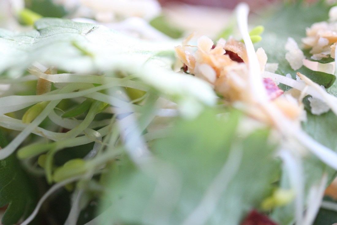 Season the fish on both sides with sea salt. Combine the fennel seeds and flour and lightly coat the fish pieces with the flour mixture, dusting off any excess. Heat oil in a large nonstick pan over medium heat. Cook the fish on one side for 6–8 minutes, depending on the thickness of the fillets. Turn and cook on other side 30 seconds. Divide the sauce between four bowls, place a piece of fish gently on top of the sauce, and top firstly with a little of the remaining tomato mixture, and the fresh coriander, sprouts, toasted coconut and dried chilli.