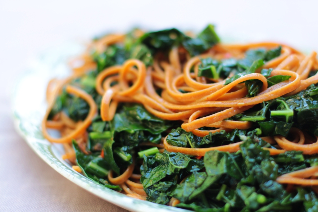Trim the stalks from the cavolo nero and slice finely. In a large frying pan heat the olive oil and saute the garlic, chilli and anchovy fillets over medium heat, taking care not to burn the garlic for a couple of minutes. Bring a large pot of salted water to boil. Add the cavolo nero to the frying pan and saute until tender. Meanwhile, when the water comes to the boil, cook the pasta until al dente (about 8 – 10 minutes). When the pasta is cooked, drain well, keeping aside about 1/2 cup of the starchy cooking water. Toss the pasta through the kale mixture, adding some of the pasta water to bring it all together, glossy and delicious. Season to taste with sea salt and black pepper. Sprinkle with the grated parmesan and lemon zest and serve right away. A red wine with some body to it goes beautifully with this dish, with Nina Simone as the soundtrack.